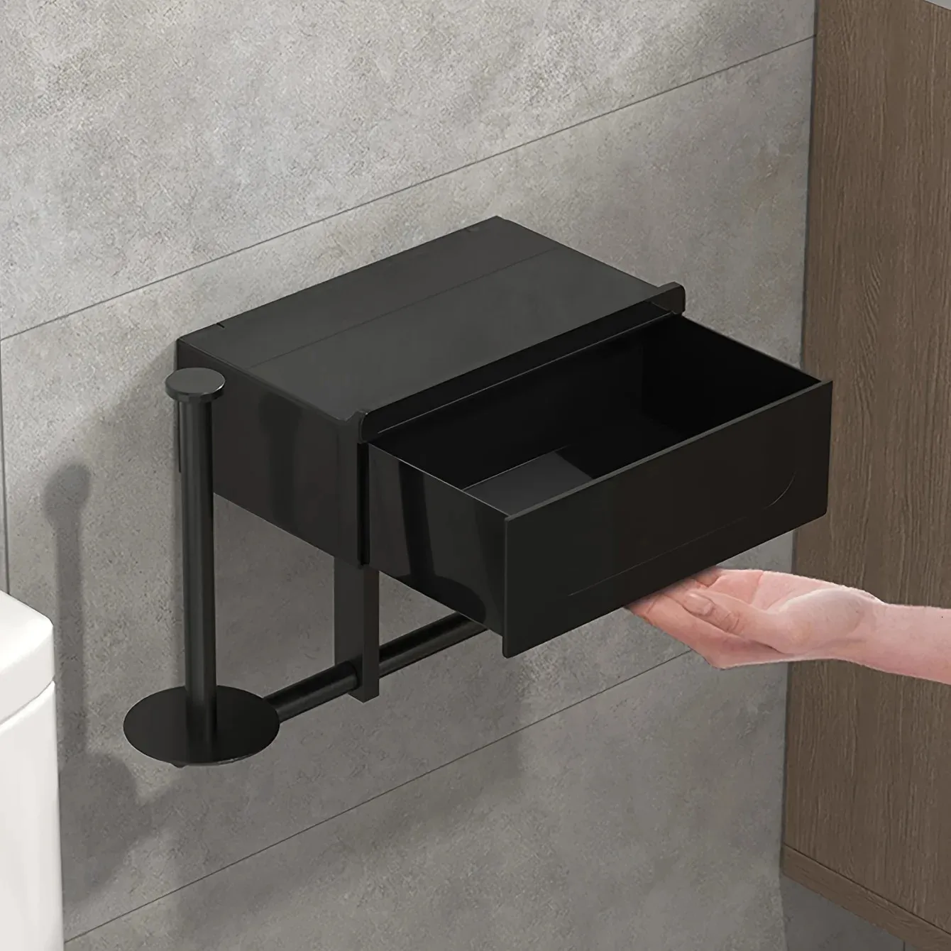 Wall-Mounted Toilet Paper Holder With Shelf, No Drilling Required.