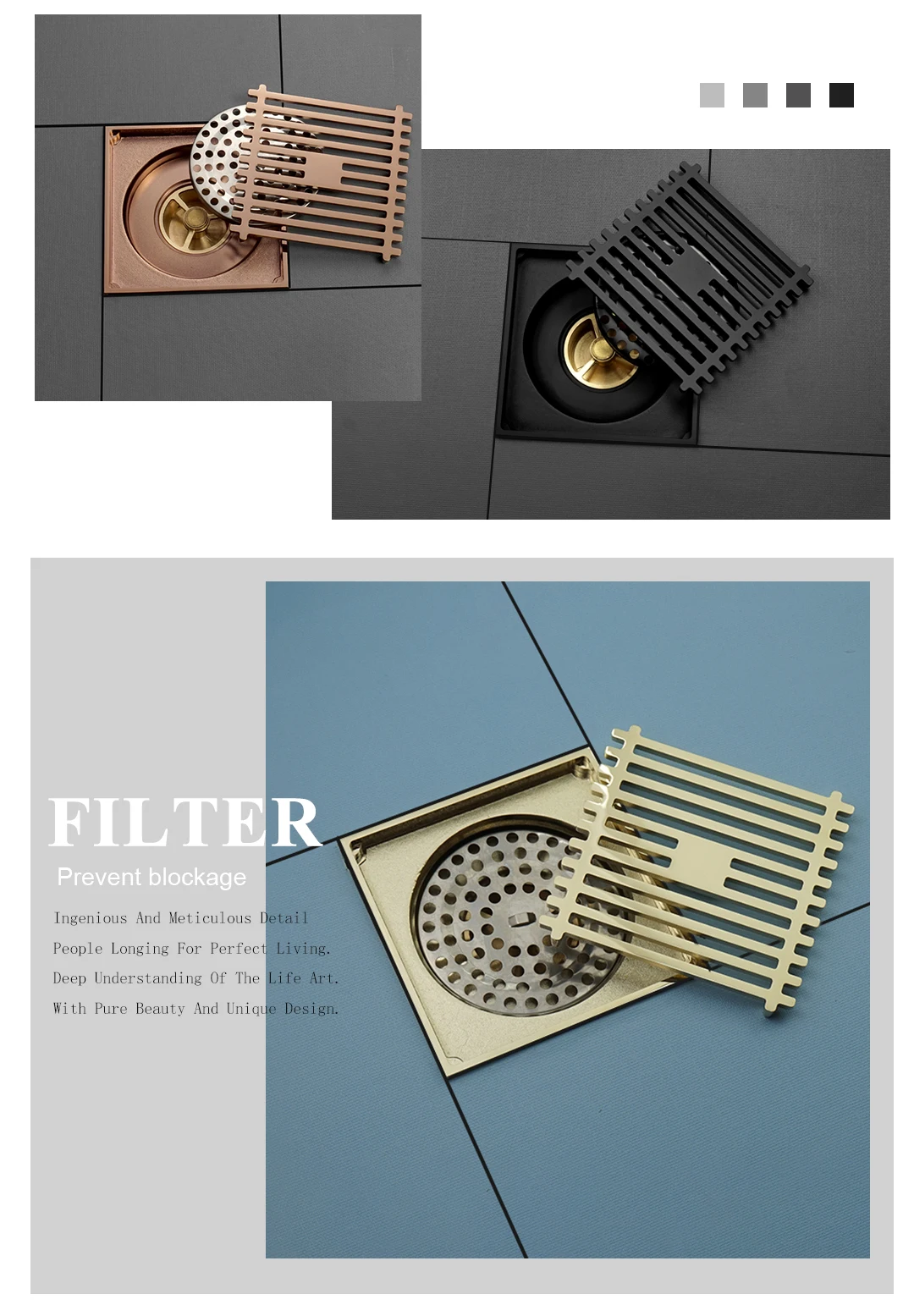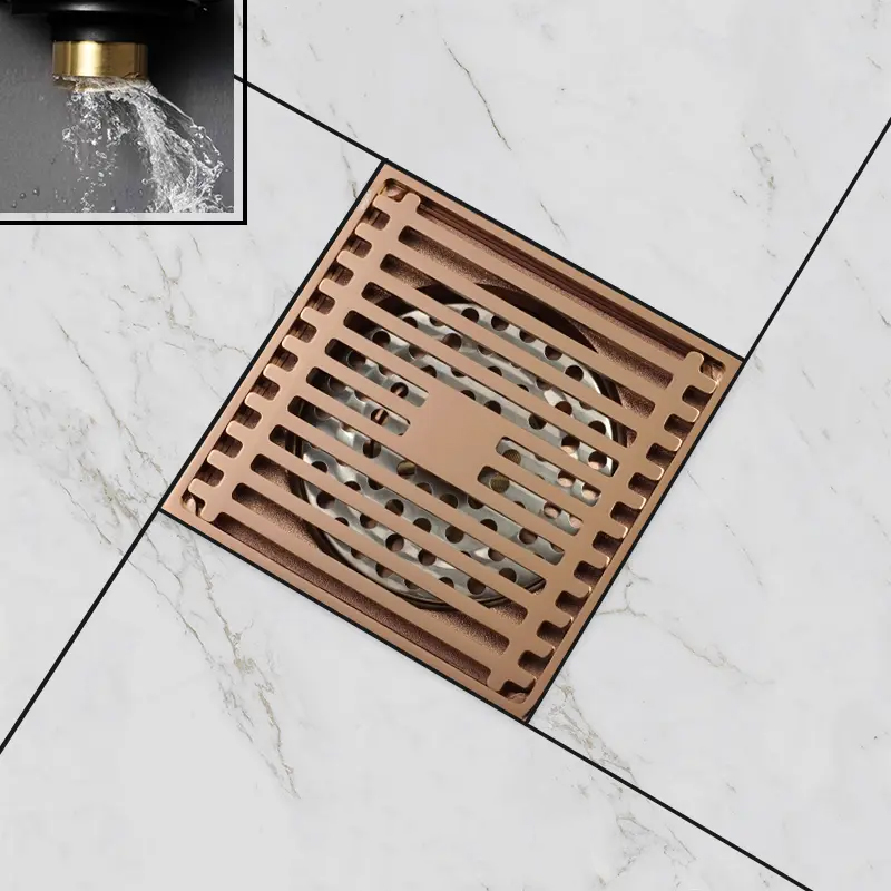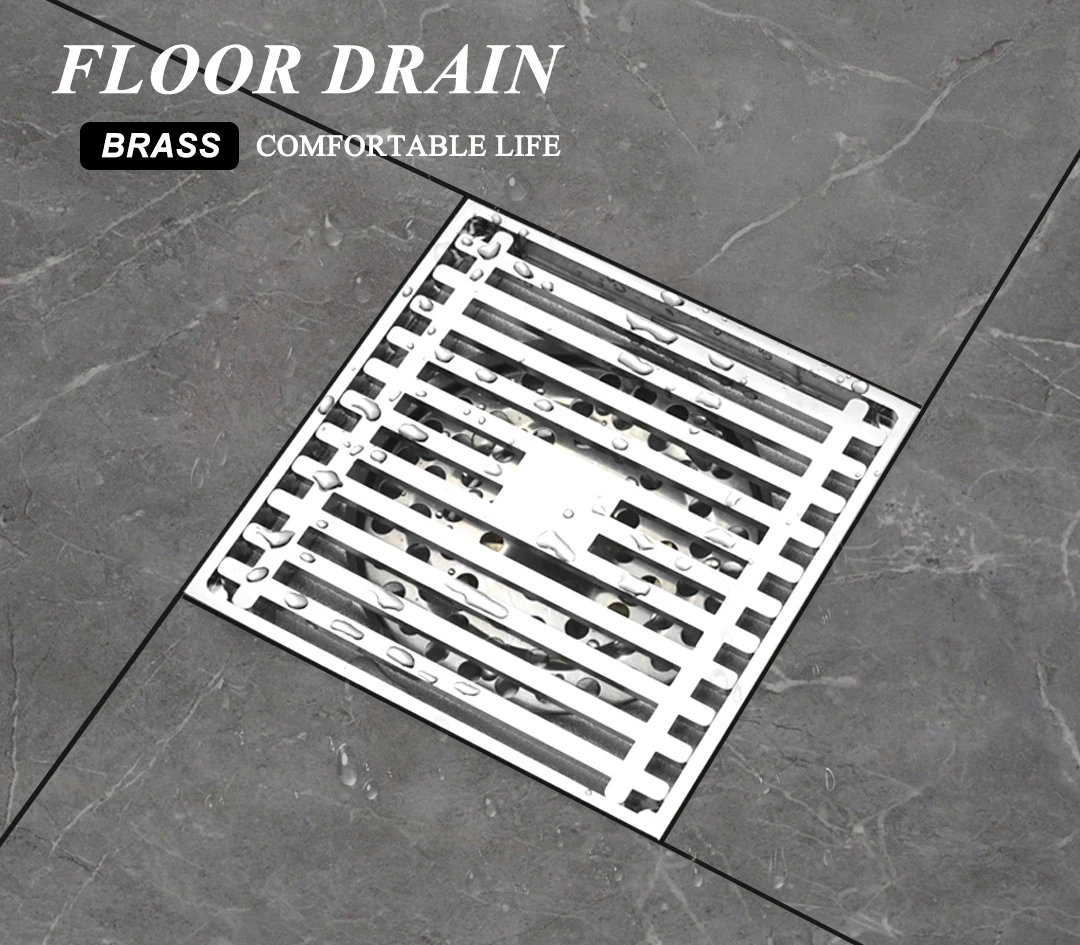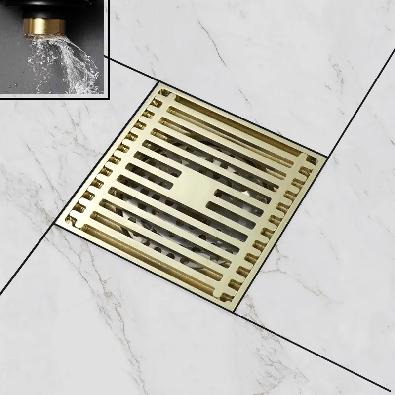 Floor Square Stripe Cover Drain with Filter Brass Large Displacement Sink Drain Toilet Shower Bathroom Toilet Deodorant Drain