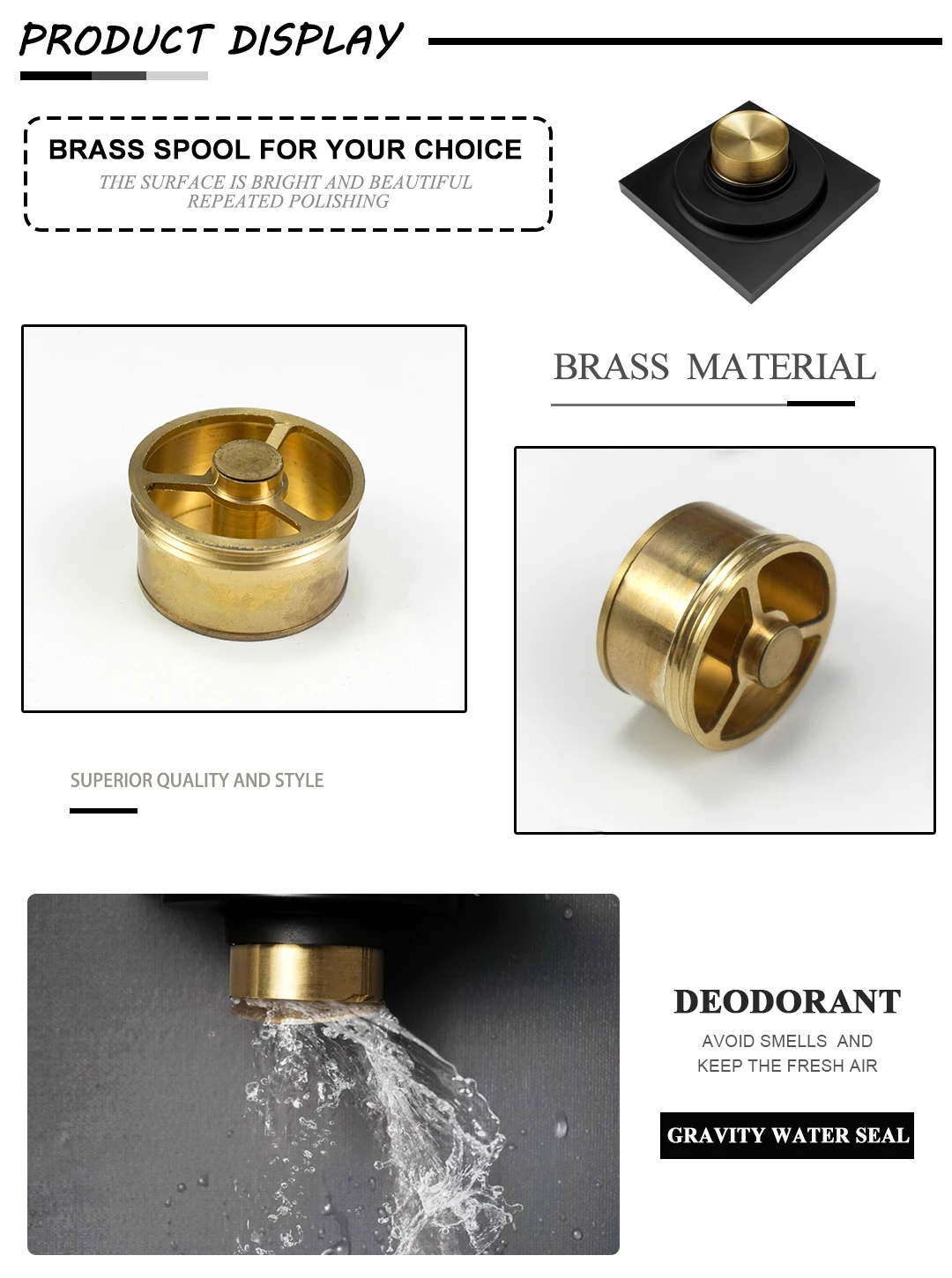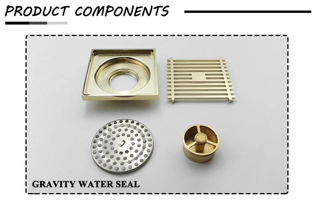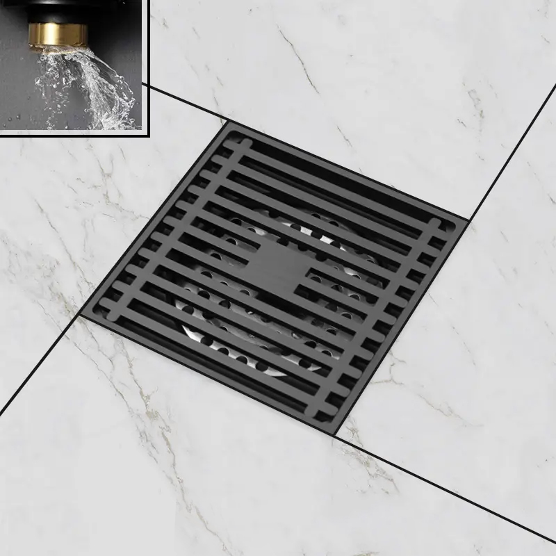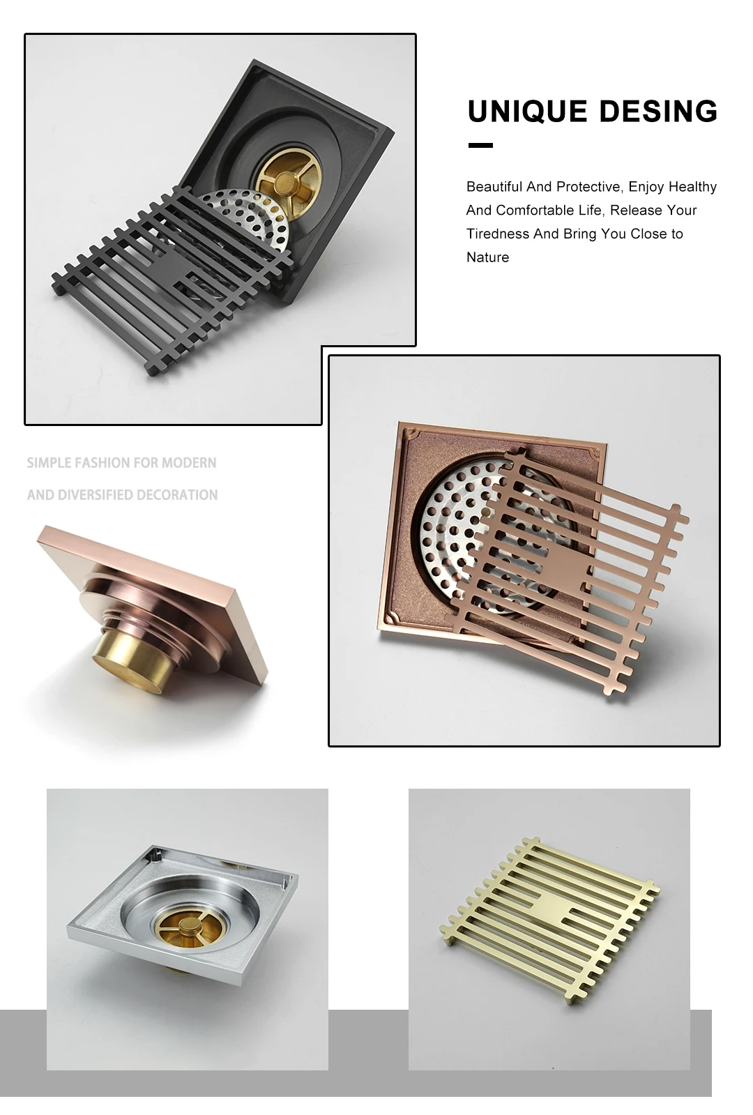 Floor Square Stripe Cover Drain with Filter Brass Large Displacement Sink Drain Toilet Shower Bathroom Toilet Deodorant Drain