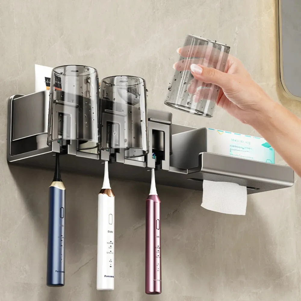 Aluminum Toothbrush Holder Bathroom Mouthwash Cup Wall-Mounted Paper Towel Holder