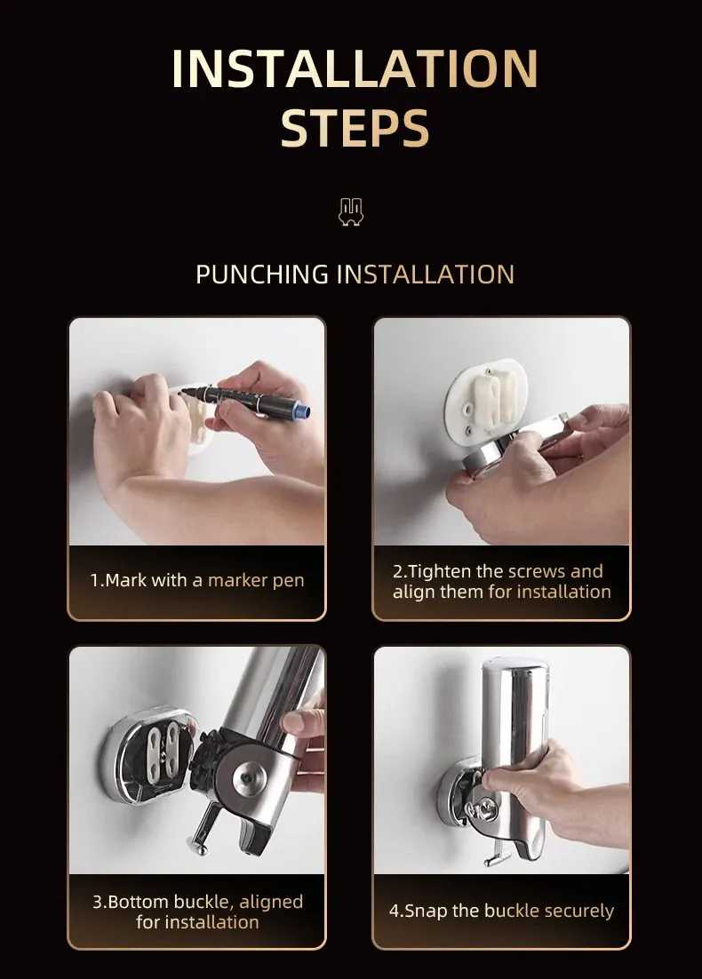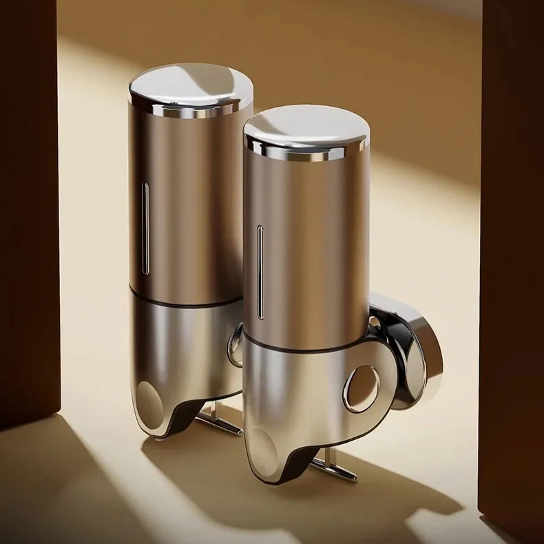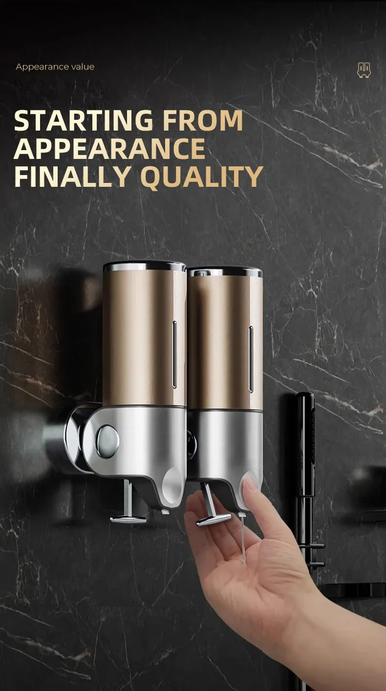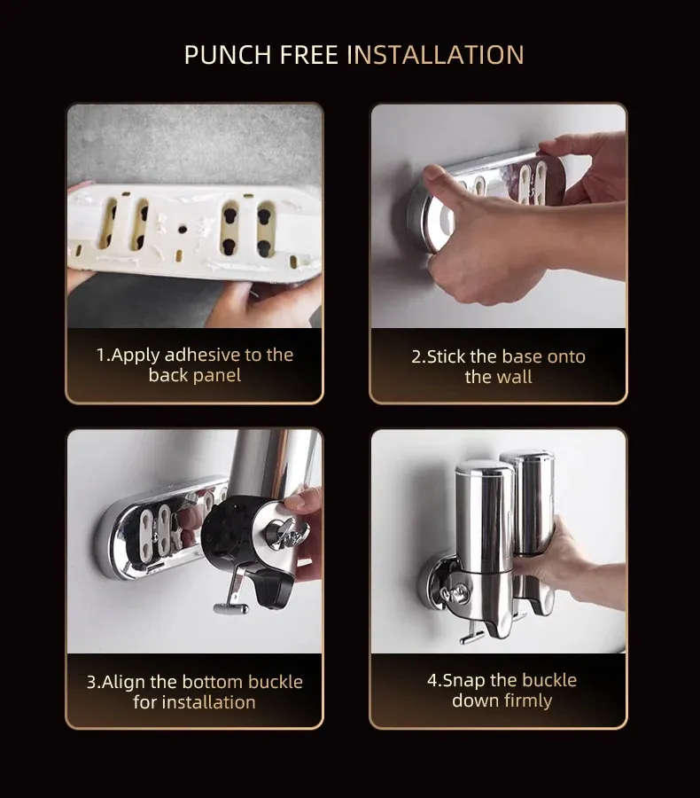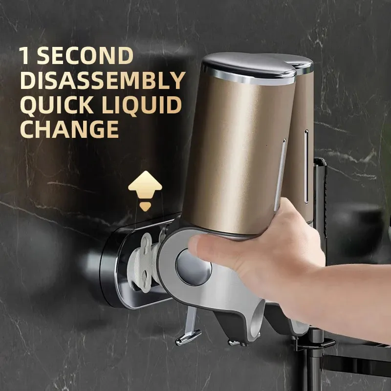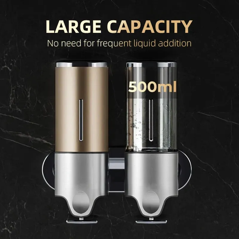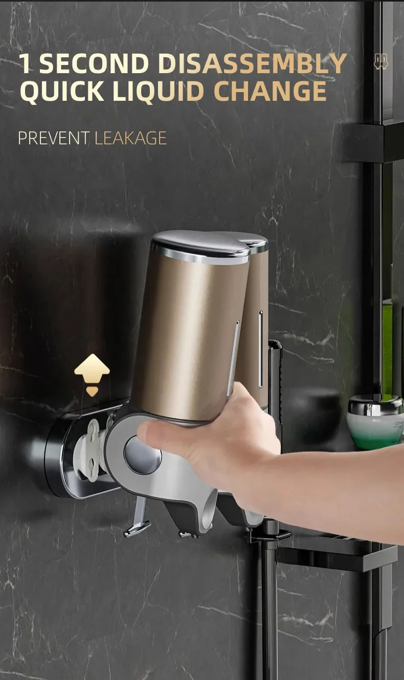 Liquid Soap Dispenser Bathroom Shampoo Metal Tie Rod Double Holder Wall