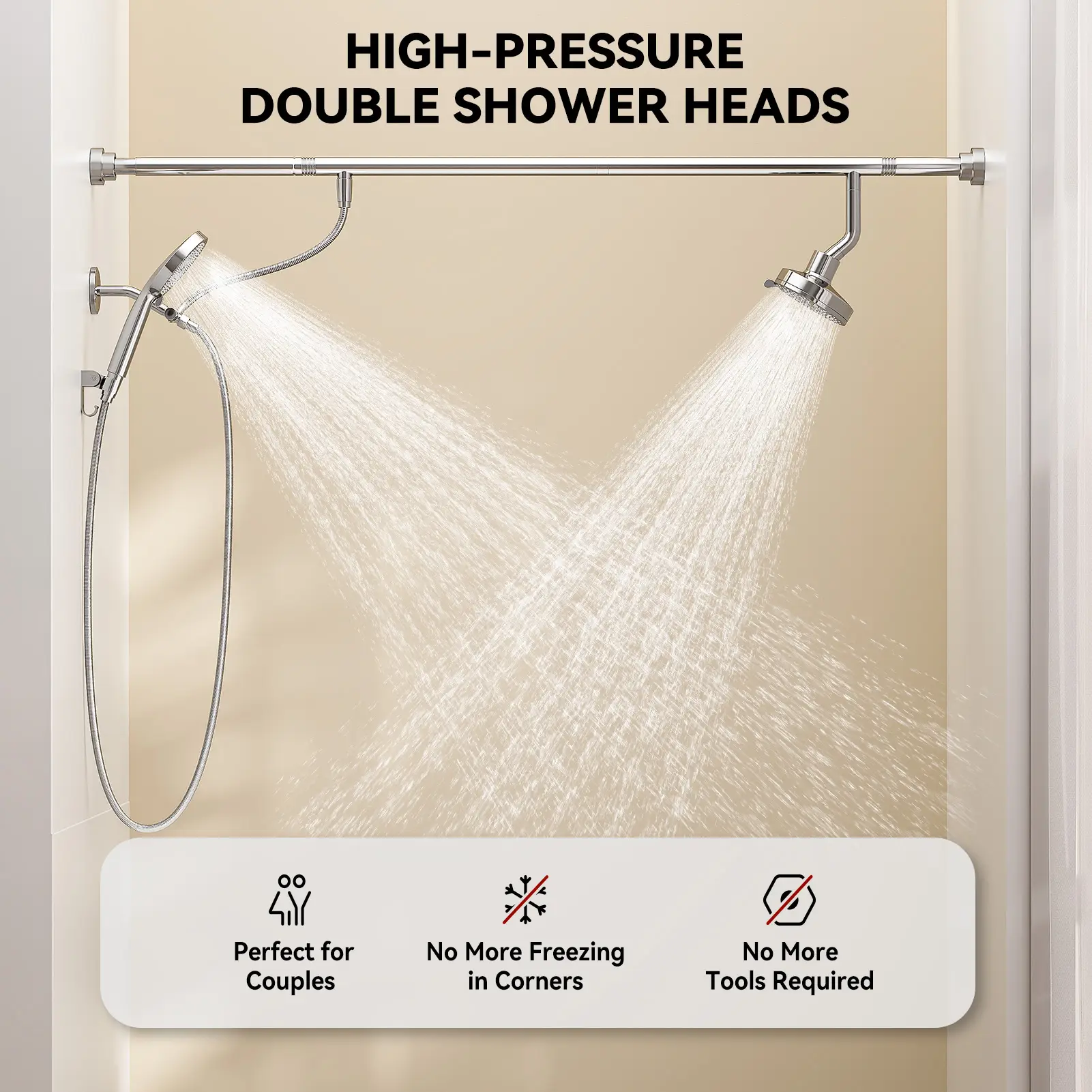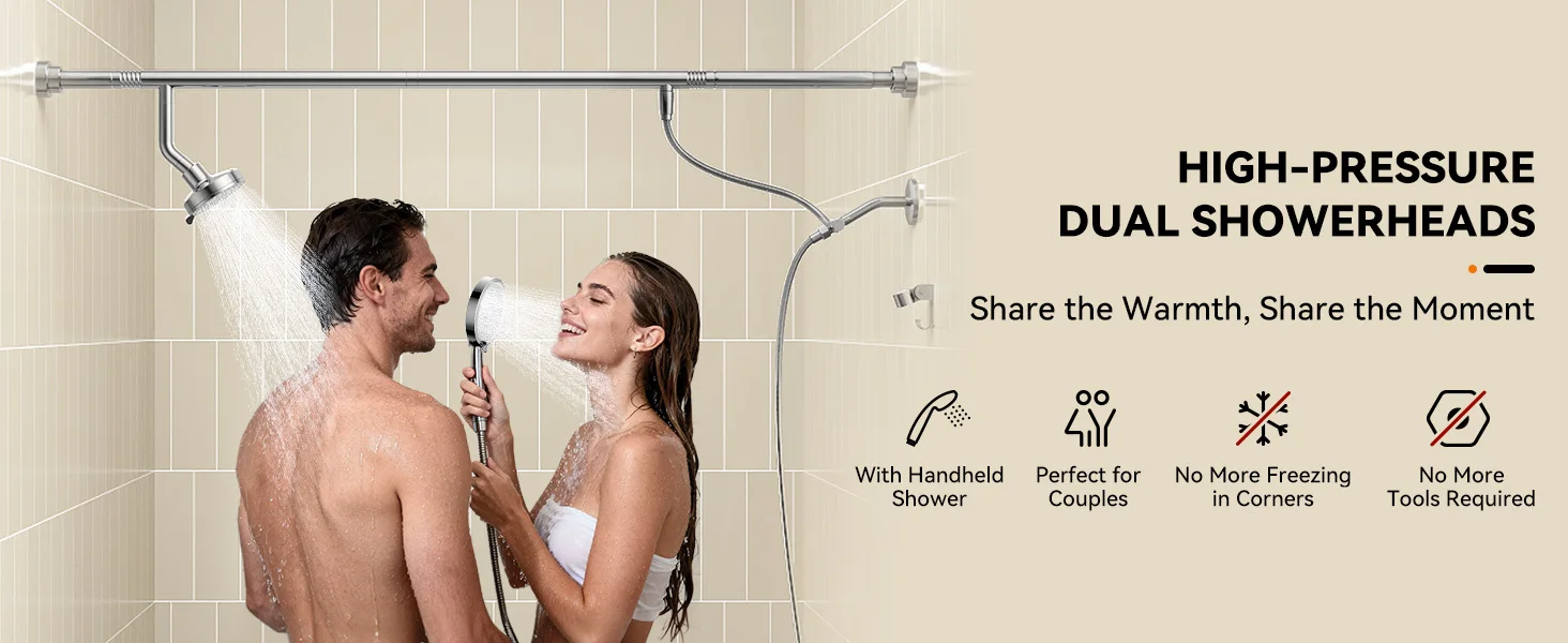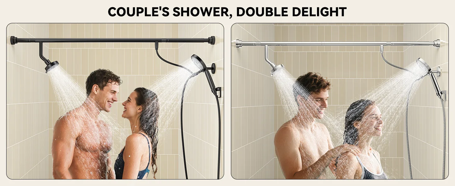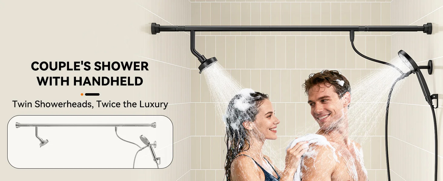 Tandem Shower Head For Couples Dual Shower Head with Handheld High Pressure Double Shower Heads for Two People Rod
