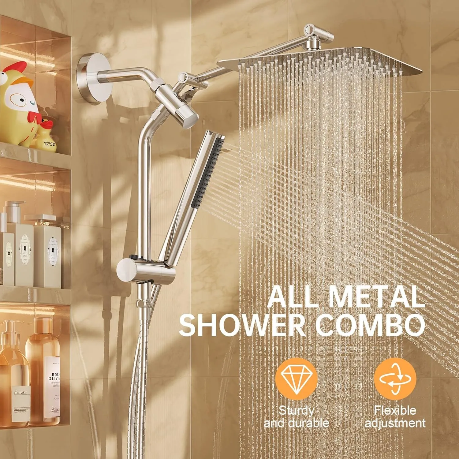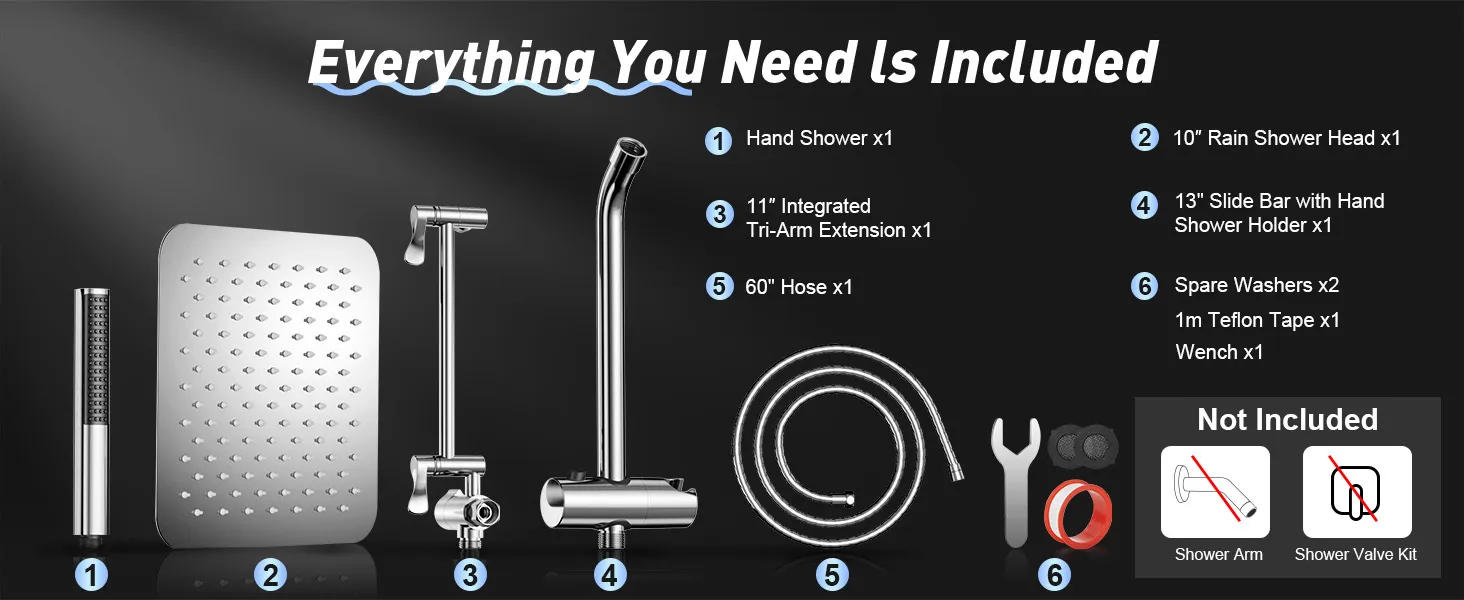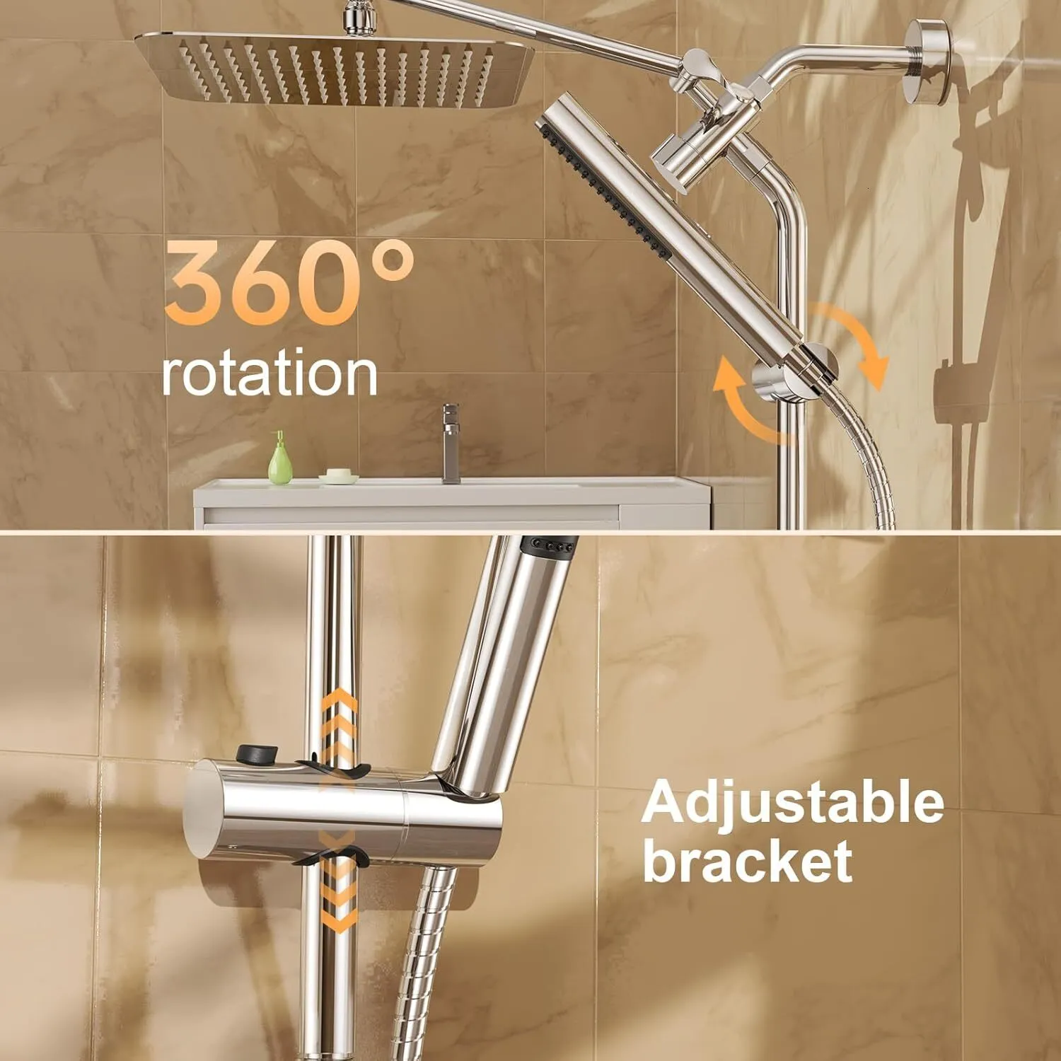 Shower Head Rain Shower Heads with Handheld Spray Combo Hand Held Bathroom Combo with Adjustable Extension Arm Home