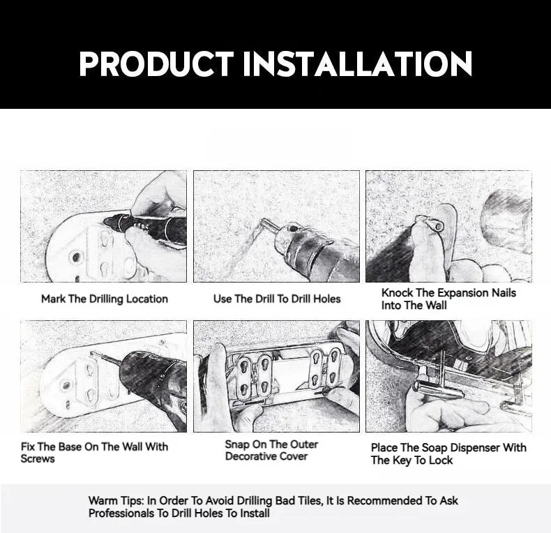 Fashionable and Minimalist in Bathroom ABS Stainless Steel Hand Press Liquid Soap Dispensers Perforated Installation